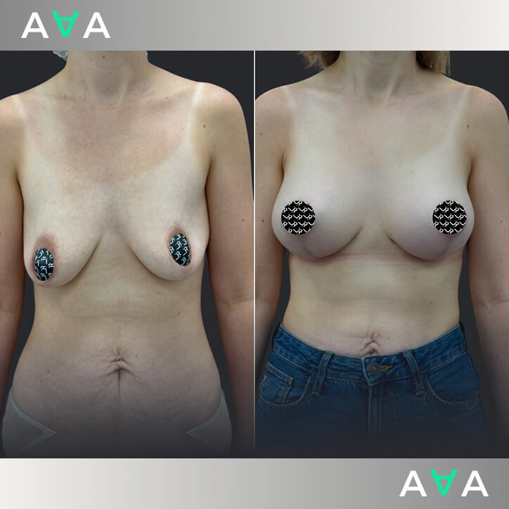 Т-подтяжка груди с коррекцией тубулярности и увеличением анатомическими имплантами