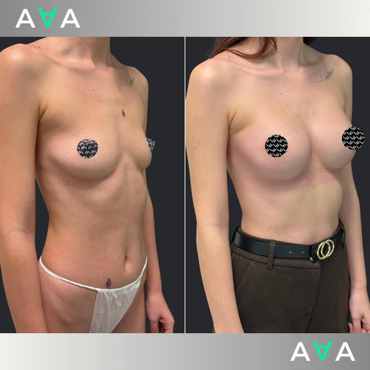 Использовали современные анатомические импланты с микрополиуретановым покрытием. Они мягко фиксируются тканями и ведут себя естественно при движении.