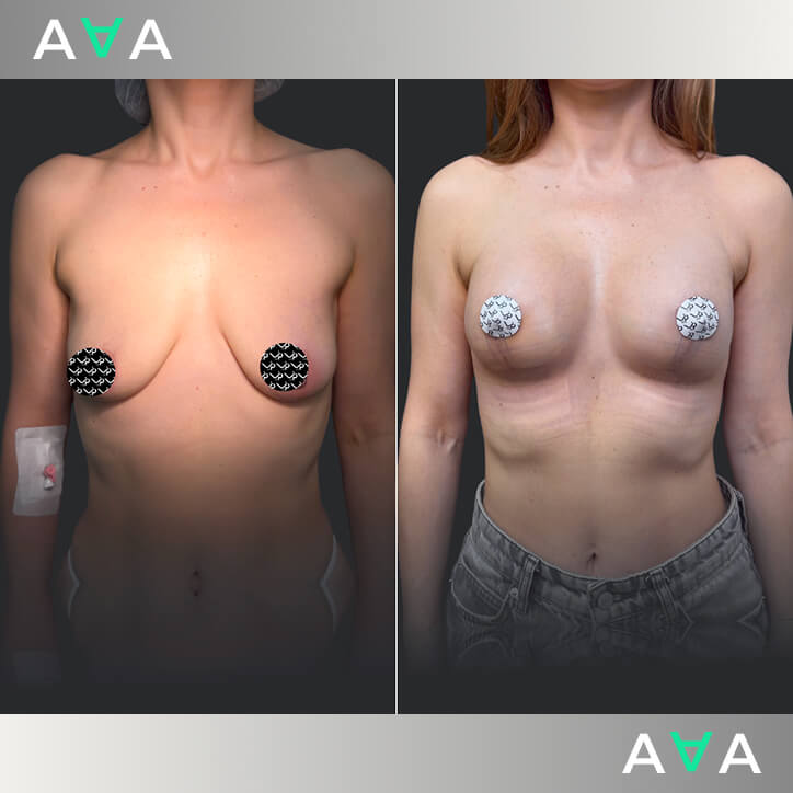 Выполнили комбинированную операцию: Т-подтяжка, установка имплантов и деликатная липосакция подмышечной зоны.